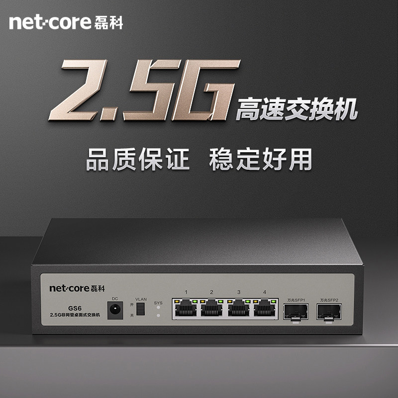 磊科2.5G交换机4/8网口+10G万兆SFP光口向下兼容千兆家用安防监控网线高速NAS即插即用可放弱电箱机架式GS6V2