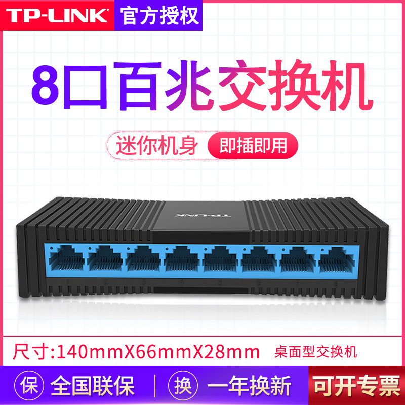 TP-LINK 8口百兆交换机 监控集线器路由器网络网线分线器家用宿舍分流器普联八孔千兆以太网交换器TL-SF1008+